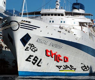 About six years ago, Ema and I decided to take a cruise. Once the idea sunk in, we were so excited about this adventure that we swore not to let the fact that we couldn’t afford the trip stand in our way. Nor did we allow the fact that I have an inner ear disorder which obligates me to spontaneously empty the contents of my stomach whenever the ground on which I’m standing moves. Ema assured me that today’s modern ocean liners are so stable and smooth, that you don’t even know you’re on the water. I reminded her of the time I lost my lunch while standing in line for a movie when a 4.2 earthquake hit. Touché.
