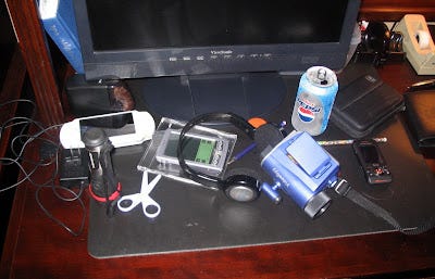 You're looking at an unaltered photo of my 11-year-old son's desk. People say he takes after his old man when it comes to his love of gadgets. I'm just happy that he's wise enough to choose healthy hobbies.